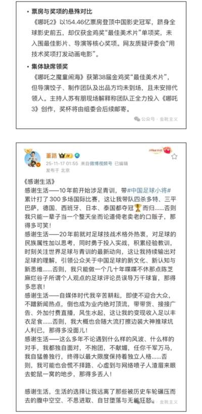 就以最近这个金鸡奖饺子团队遭遇霸凌式冷遇,以及足球那边一帮前央视口贩子+退役前国脚们集体围剿“门外汉”董路,如此文体两开花的盛况,你就会明白「封建」是消弭不了的。