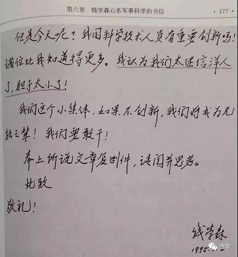 这里还请看1995年钱学森的一封信,这封信是对“钱学森之问”的完整解释: