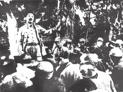 贺龙和他领导的红三军战士们。