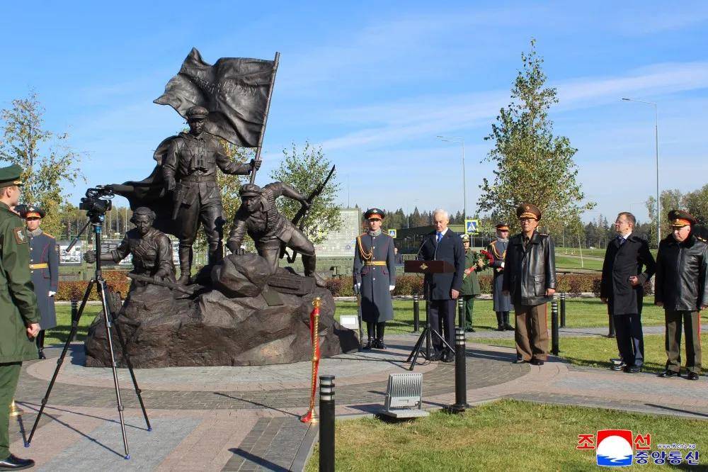 为这座雕像揭幕的,是俄联邦国防部长别洛乌索夫和朝鲜国防相努光铁;后者正率领朝鲜军事代表团对俄进行工作访问。努光铁及朝鲜军事代表团是何时出访的,朝方没有公布,俄方也只是在报道此次雕像揭幕活动时公开披露了努光铁的来访。从此次活动时间倒推,努光铁抵俄的时间似乎应该在9.29-9.30之间,而这也恰是崔善姬结束出访返回的时间节点。