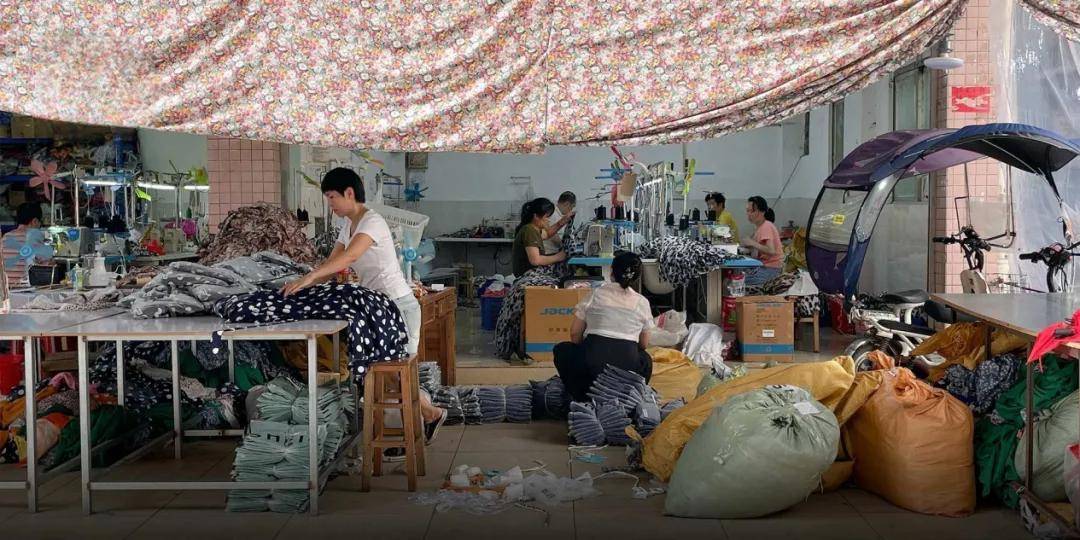 在广东一个狭窄、昏暗的服装工厂车间里,