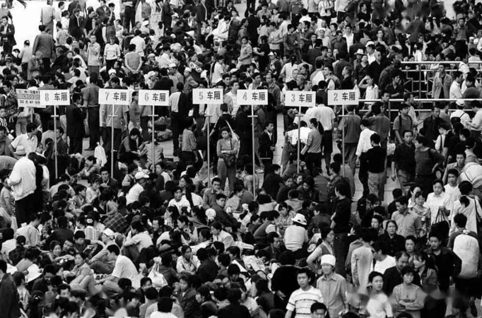 2005年9月2日,兰州火车站候车室已经无法容纳采棉工候车,工作人员在车站广场安排临时候车区 | 图片来源:《新京报》2005年9月17日