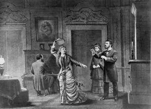 易卜生的经典剧作《娜拉的出走》探讨了一个传统家庭的动态,娜拉不堪忍受在丈夫的照料下被当作无助的“玩偶”,宣布独立,摔门而去。尽管当时女权运动正在兴起,但这仍然震惊了19世纪的观众,这一幕被称为“响彻全球的摔门声” | 图片来源:网络