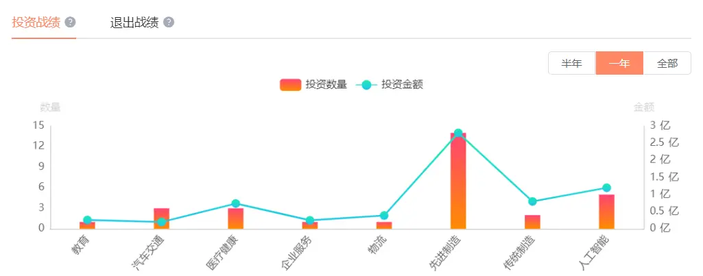 从近一年投资行业偏好看,顺为资本主要投资新兴领域,其中先进制造投资次数最多,达14次,人工智能领域投资5次,医疗健康和汽车行业分别投资3次。