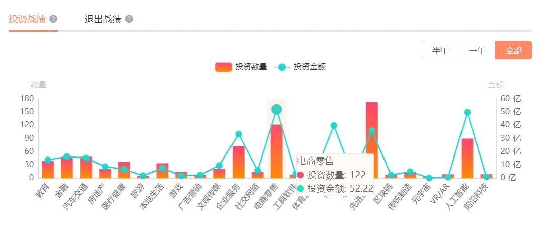 从投资行业偏好看,以投资先进制造业为主,投资173次,其次是电商零售,投资数量122次,人工智能投资90次,排在第三位。