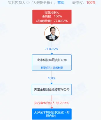 天眼查股权穿透发现,苏州顺为与天津金米的实际控制人均为雷军,均为小米的投资机构。其中,苏州顺为投资事件46起,天津金米已经参与了193起对外投资。