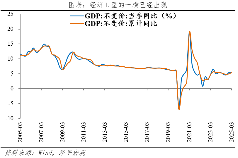 从中长期视角看,十年前作者判断中国“经济L型”,中国经济要有一个新的增长平台。现在经济L型的一横已经出现,这是中国经济的新常态。背景是中国房地产大开发时代落幕,老龄化少子化,逆全球化,经济进入5%左右中速增长区间。