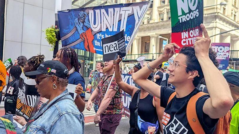数千名来自全国各地的民权运动和劳工运动领袖与活动人士参与了游行。他们共同揭露了大企业对特朗普及其“让美国再次伟大”(MAGA)运动的支持,并谴责其对非裔美国人、移民以及整个多种族工人阶级的攻击。