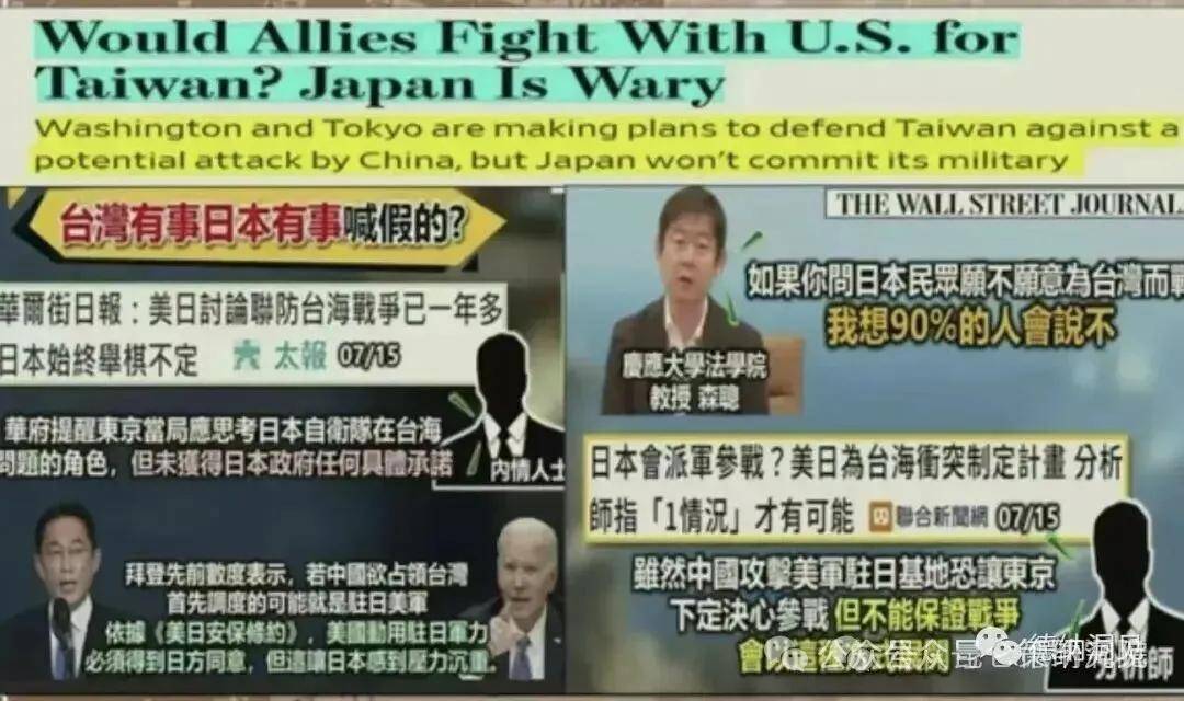 日本《朝日新闻》公布了一项民调,如果台海发生冲突,而美国介入的话,有高达八成的日本受访者是担心日本被卷入的。民调也显示,赞成日本自卫队应该和美军联手参战的只有11%。意思是近九成的日本民众是不赞成日本自卫队介入台海冲突的。