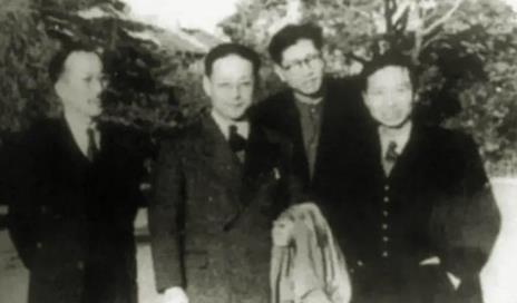 ◆1949年,潘汉年(左二)、吴克坚(左四)等在上海。