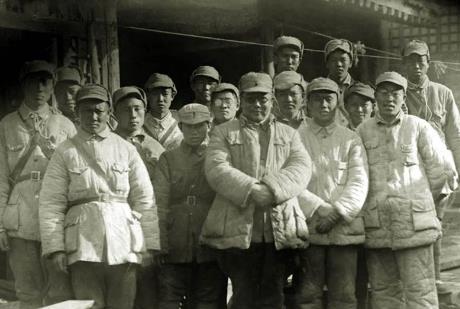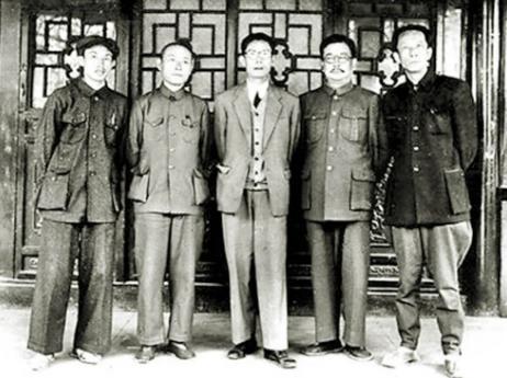 ◆1949年,夏衍(左三)、李克农(左四)等在北平。